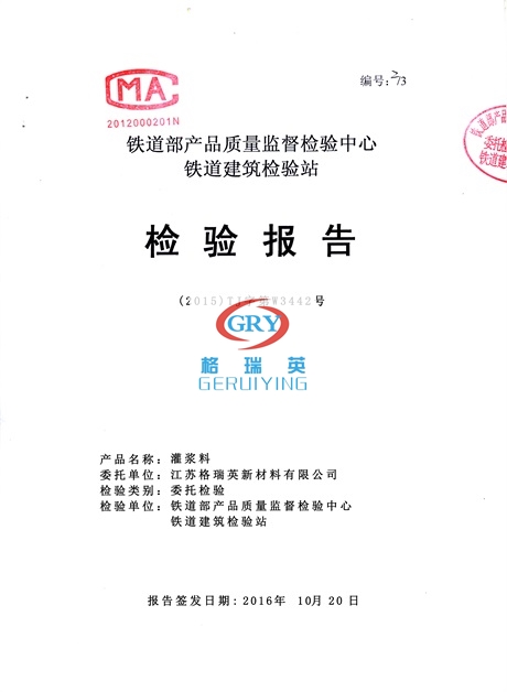 此文關鍵詞:灌漿料檢驗報告,格瑞英檢驗報告
