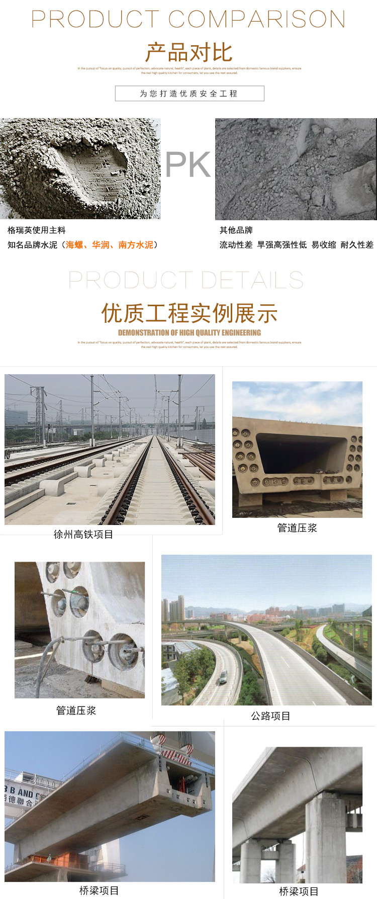 早強高強澆注后1-3天強度高20-50Mpa以上,縮短工期。